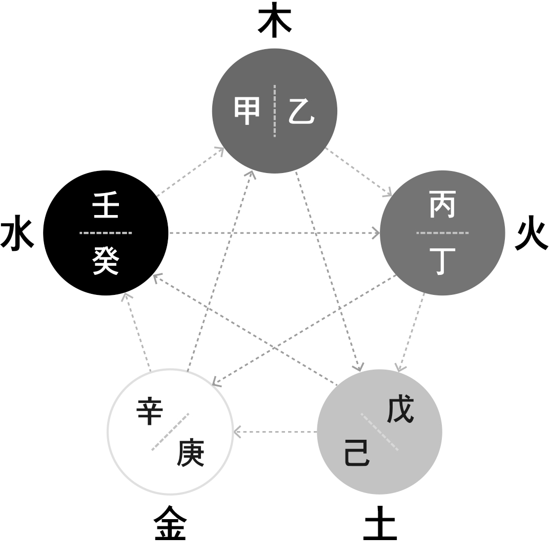 3장 천간 > 4. 천간 정리 > 천간 생극제화 도표