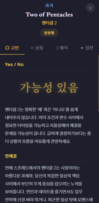 - 고민 — Yes/No + 고민별 운세 + 해당 포지션 설명