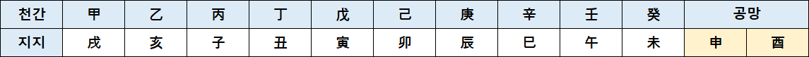 ※ 이하 내용에서는 순중공망을 ‘공망’이라고 하겠습니다.
